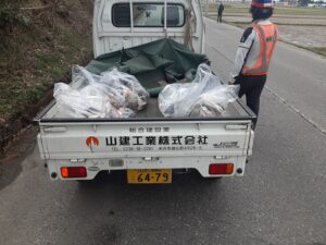 弊社は、会社近くの興譲館の正門前の道路と遠山街道の笹野地域を担当しています。